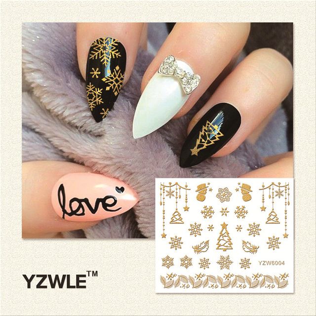 Wholesale Yzwle 1 Sheet Hot Gold 3d Nail Art Stickers Diy Nail Decorations Decals Foils Wraps Manicure Styling Tools Yzw 6004