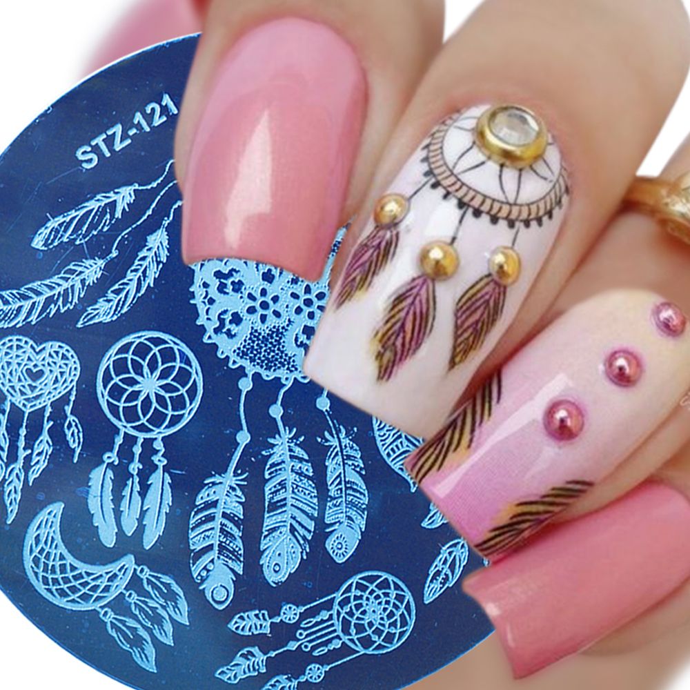Round Nail Stamping Template Plates Dream Catcher Flowers Lace Image