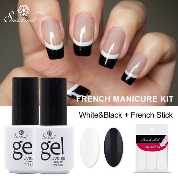 Wholesale Saviland French Manicure Set Nail Art Black White Uv Gel Nail Polish Free Tip Guides Soak Off French Gel Polish Uv Nail Gel Bio Sculpture