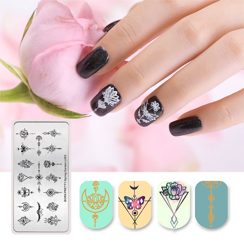Born Prey Spring Garden Stamping Template Geometry Flower Arrow Nail Art Image Plate Manicure Tools Rec L003