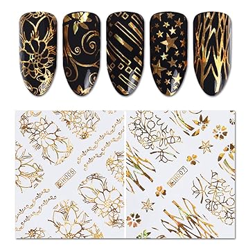 Amazon Com Bornbeauty Holographic Gold 3d Nail Art Sticker Flower