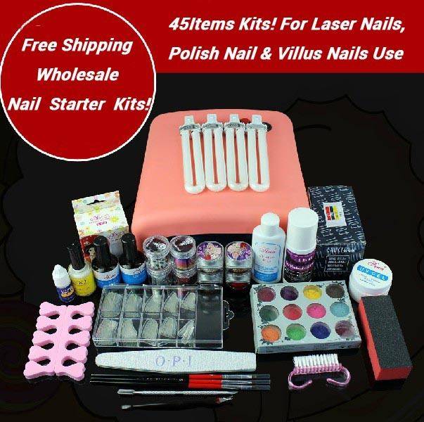 Wholesale Free Shipping Nail Art Starter Kit For Diy Polish Nails Villus Nails And Laser Design Nail Arts Total 45itmes With 36w Lamp