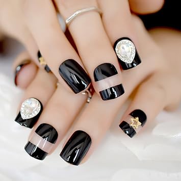 Amazon Com 24pcs Kit Classic Black French Nail Tips 3d Crystal