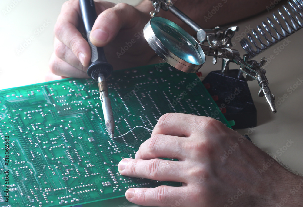 Photo Art Print Repair Circuit Board With Soldering Iron And