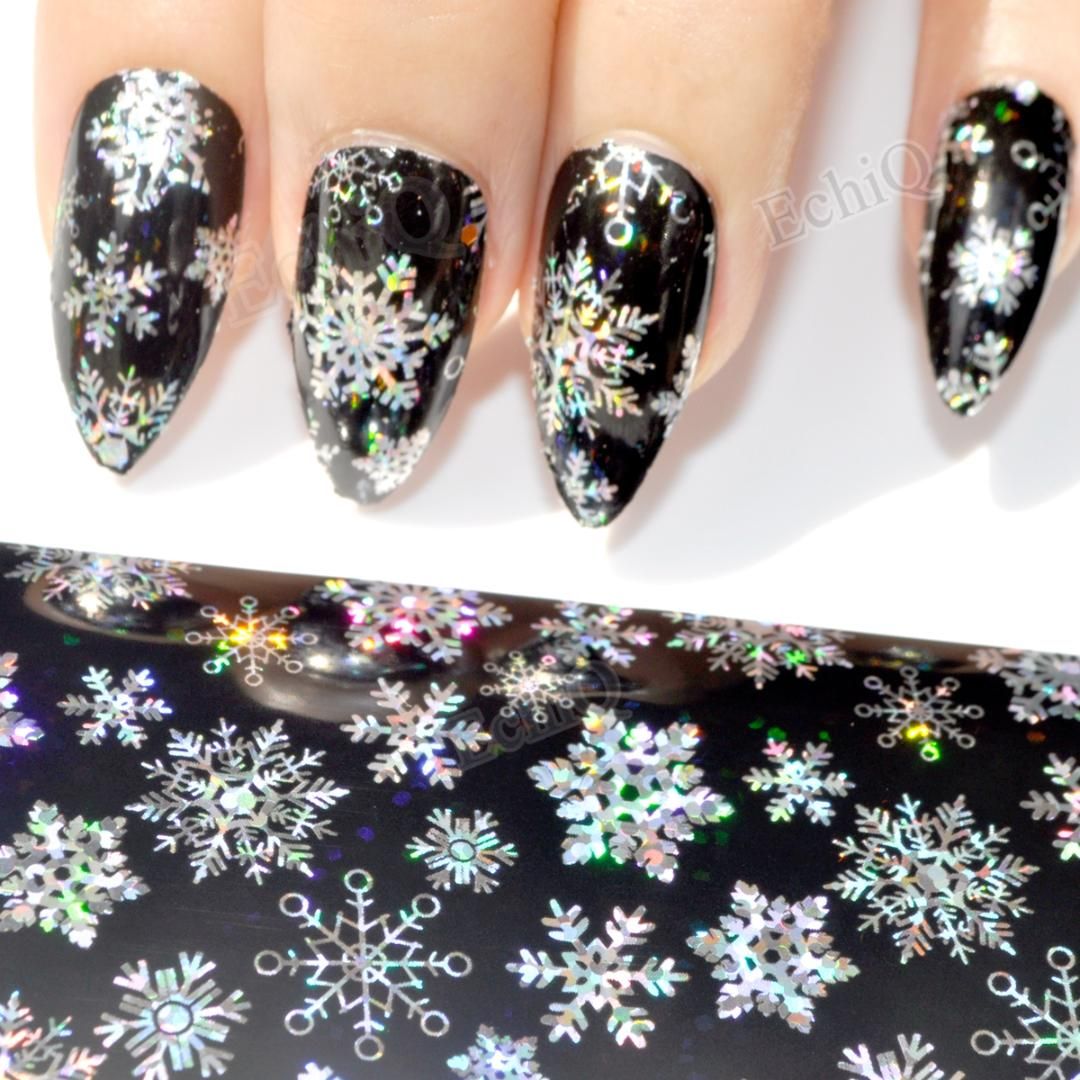 Holo Silver Snowflake Nail Foil Decoration Black Style Nail Art Glue