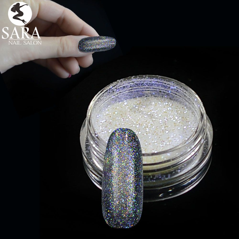 1 Jar Holographic Laser Colorful Glitter Mermaid Effect Powder Nails