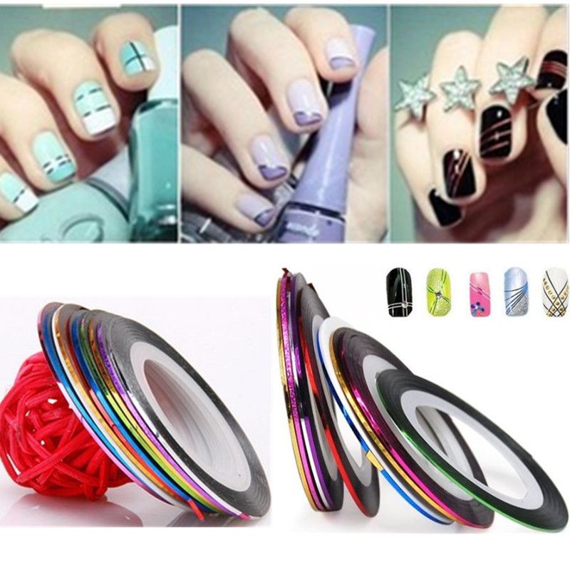 Us 9 69 Hot Sale 100pcs Mix Color Rolls Striping Tape Line Nail Art Decoration Sticker Egnw 4733 In Rhinestones Decorations From Beauty Health