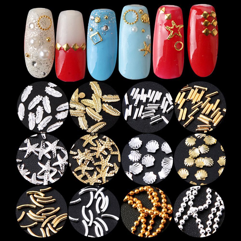 New Metal Mixed Ocean Style Nail Art Decoration Fashion Women 3d Shell Star Feather Leaves Nail Polish Tips Decoration