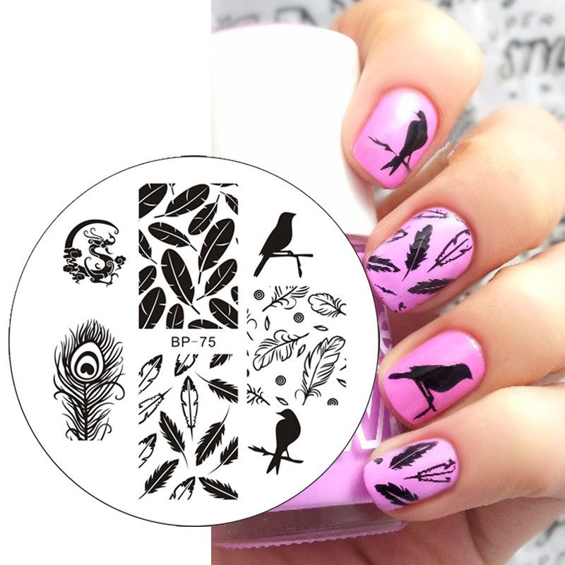 Born Pretty Nail Art Stamping Plates Birds Dragon Feather Theme