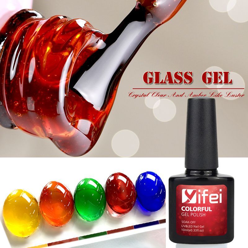 Yifei Nail Art Glass Amber Gel Painted Glued Uv Gel Champagne Gold