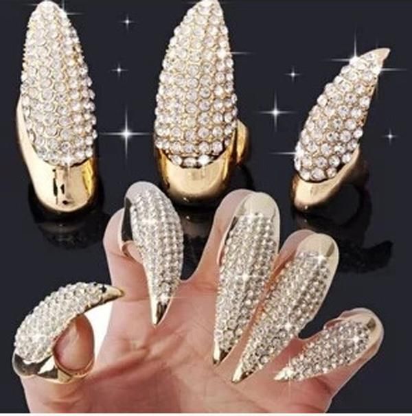 2019 Crystal Rhinestone Nail Ring Gold Black Plated Paw Talon Cat