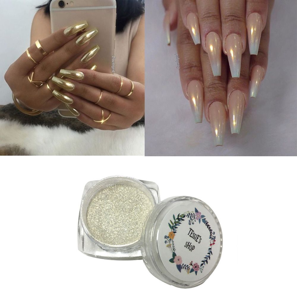Tessie Shop Gold Mermaid Nail Pigment Chrome Stiletto Nails Nail Art