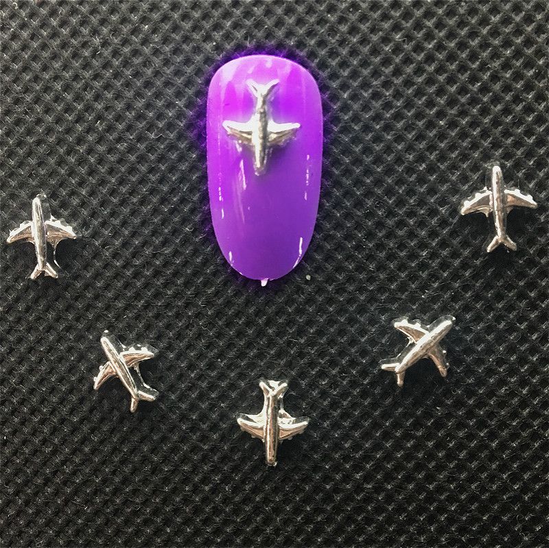Silver Aircraft Nail Art Decorations Dazzling Metal Dekors Flat Back