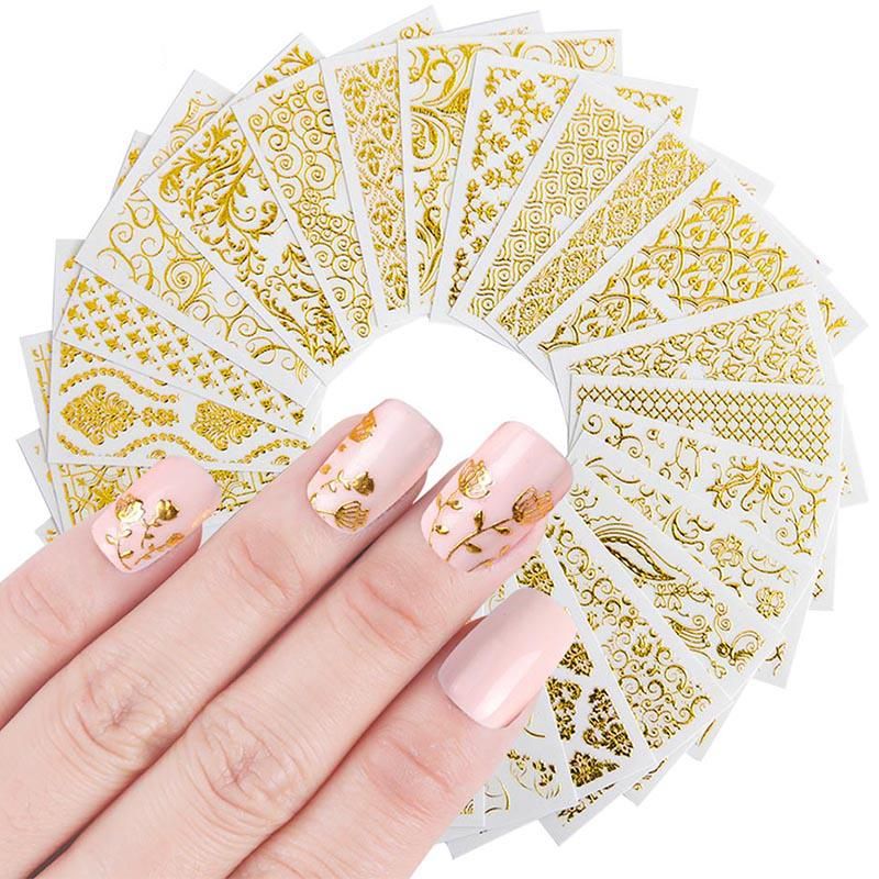 Bearpaw Shinny 3d Sticker Nail Art Gold Glitter Adhesive Flower Vine