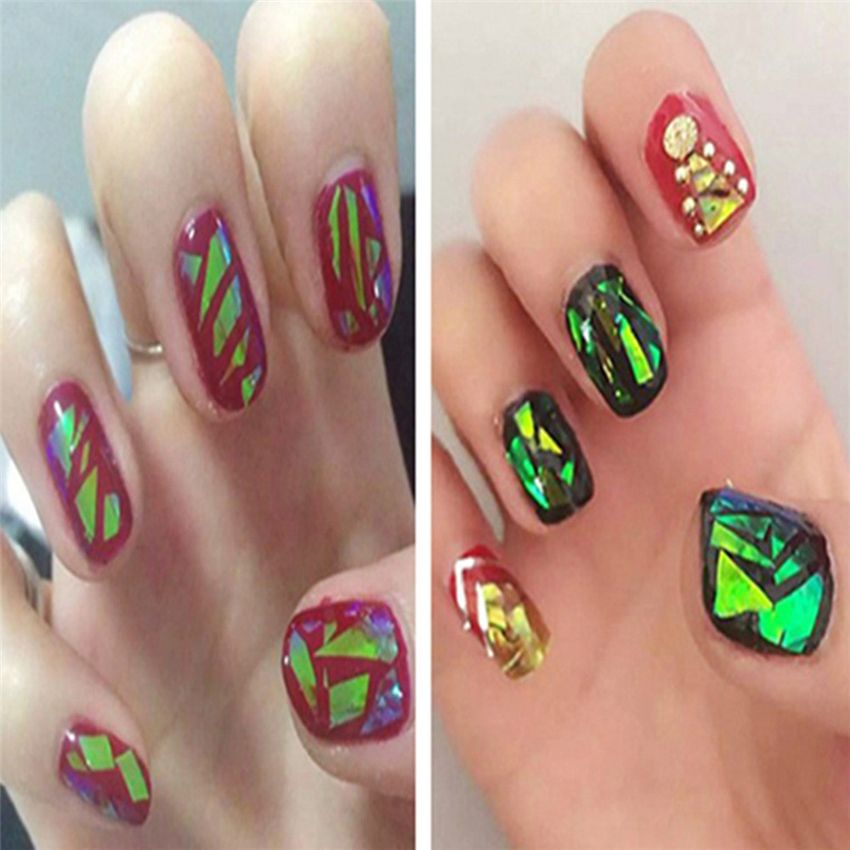 20pcs Lot Laser Nail Art Foils Decals Holographic Broken Glass Nail Sticker Shin