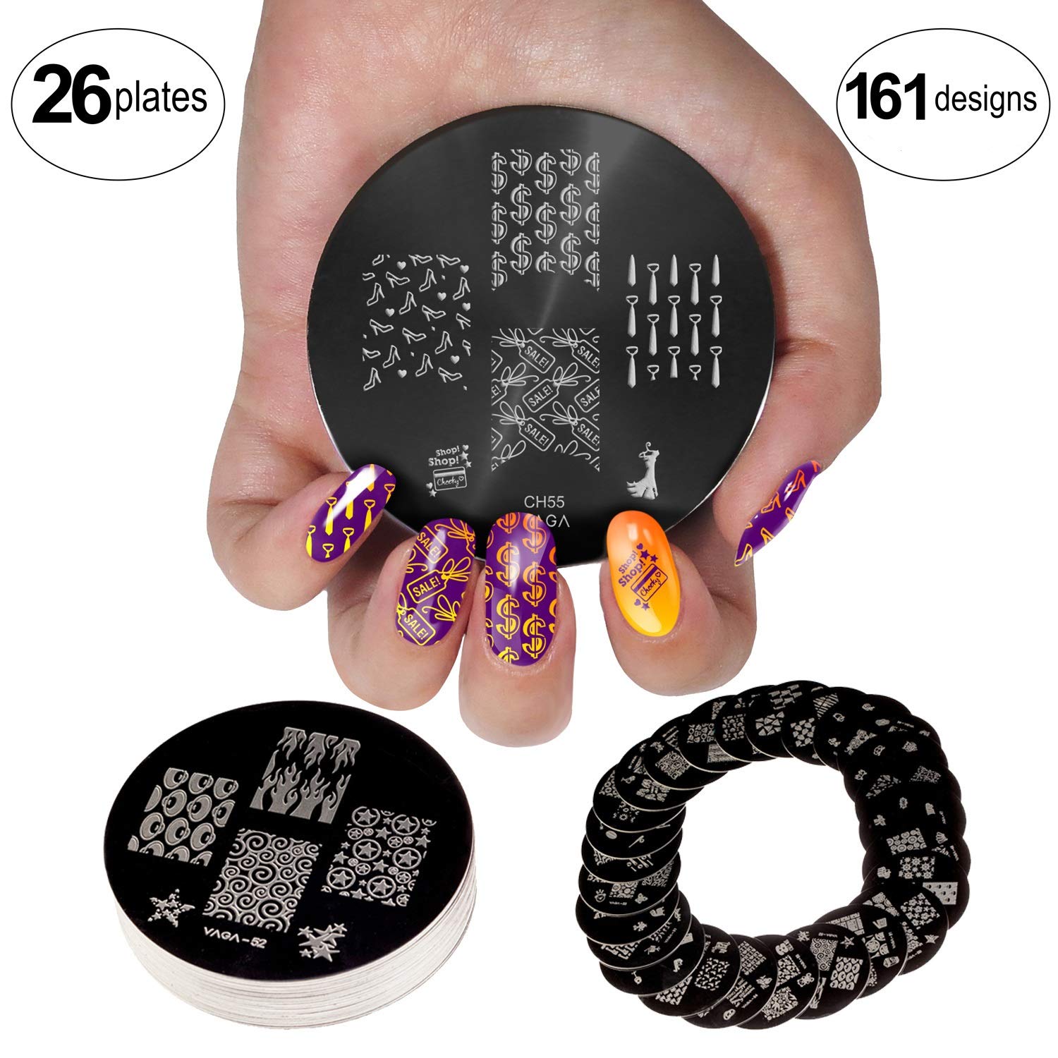 Vaga 26 Nail Stamping Plates Acrylic Nail Kit As 161 Nail Stamp Designs To Match Your Gel Nail Polish