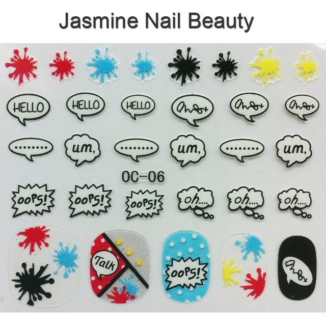 Foreverjsamine 5pcs Colorful Sparkle Nail Art Sticker Boom Message
