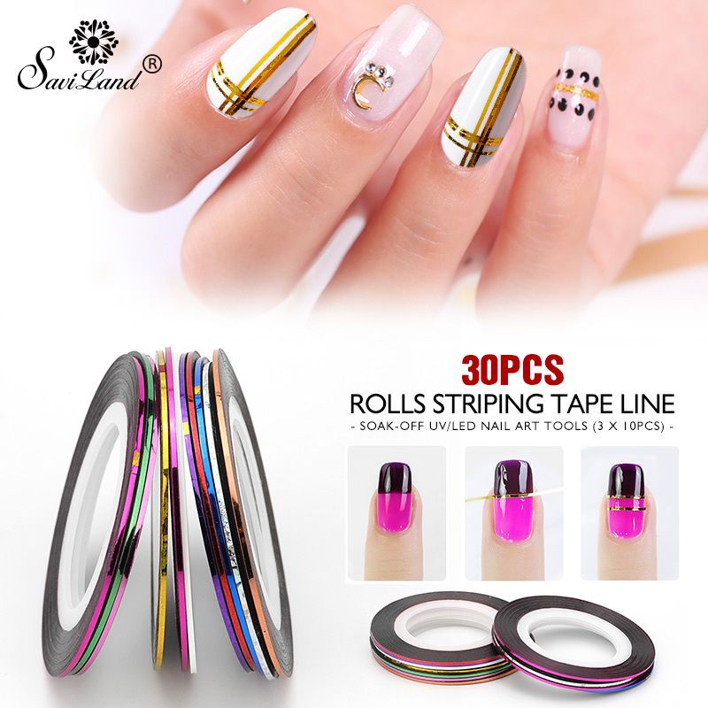 Saviland 30 Rolls Mixed Color Nail Striping Tape Decal For Diy 3d Variety Nail Art Tips Decorations Line Foil Sticker
