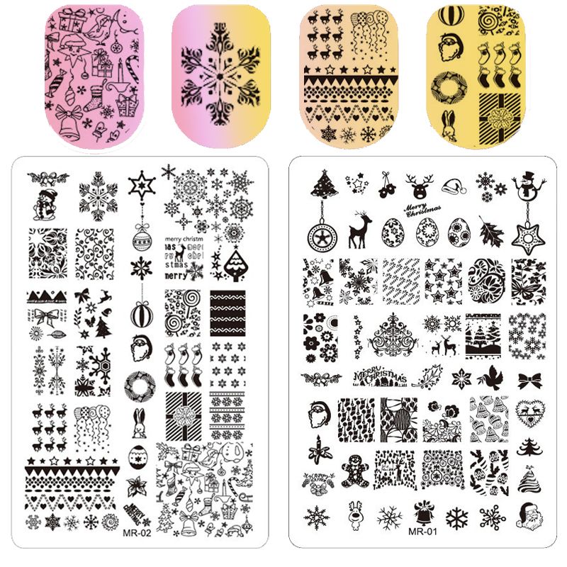 Christmas Theme Nail Art Stamping Plates Santa Snowflake Jingle Bell