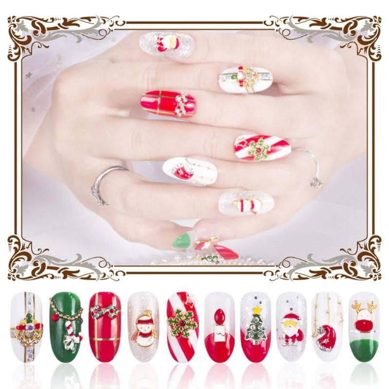 Box Christmas Bell Santa Elk Rhinestone 3d Diy Nail Art Decorat