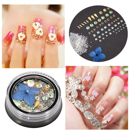 Walfront Nail Art Decorations Glitter Rhinestone Dry Flower Metal