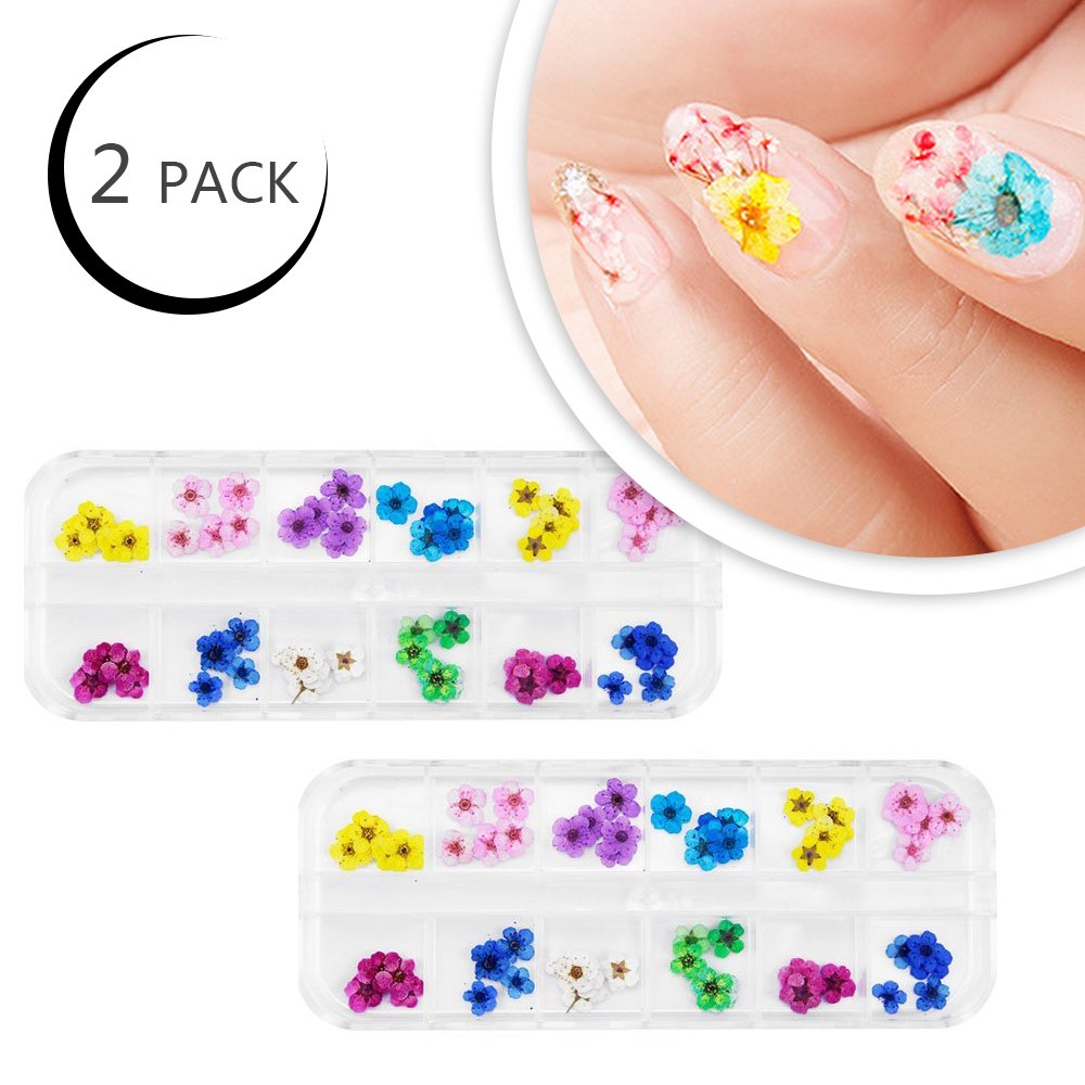 Amazon Com Dried Flowers 3d Nail Art Sticker 2 Pack 12 Color Real