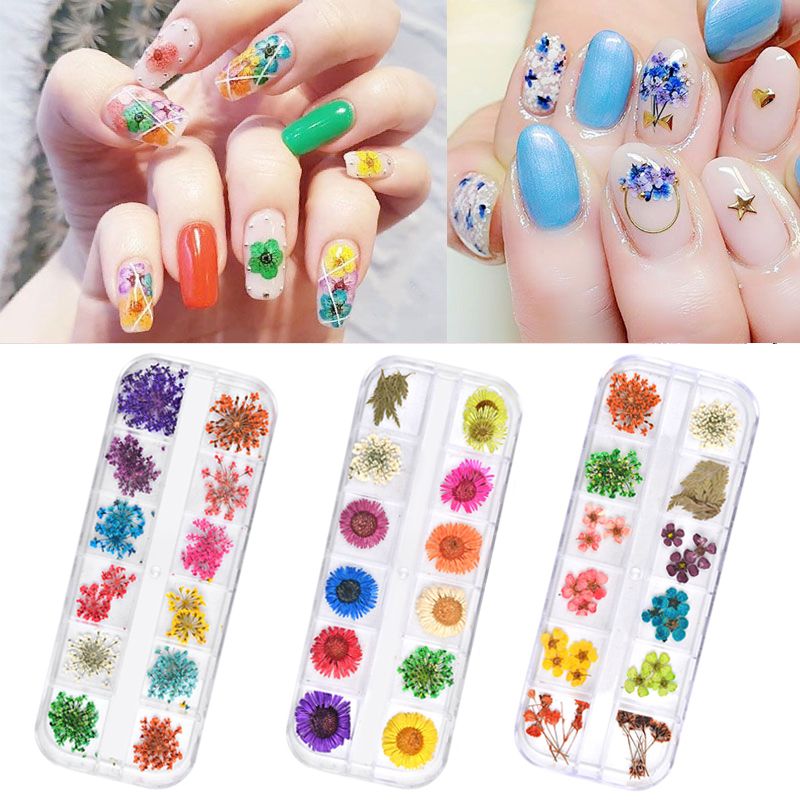 12 Color Real Dry Dried Flower Nail Art Decoration Uv Gel Acrylic