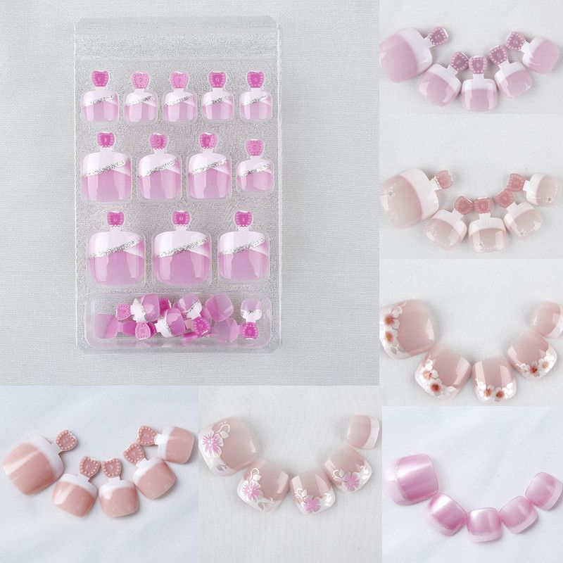 Wholesale Mixed 12 Sets Lot 24pcs Set Full Cover Artificial False Toe Nails Foot Pedicure Diy Pre Design Acrylic French Toe Nail Art Tips