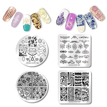 Nicole Diary Stamping Plates Set 2pcs Square Nail Amazon Com