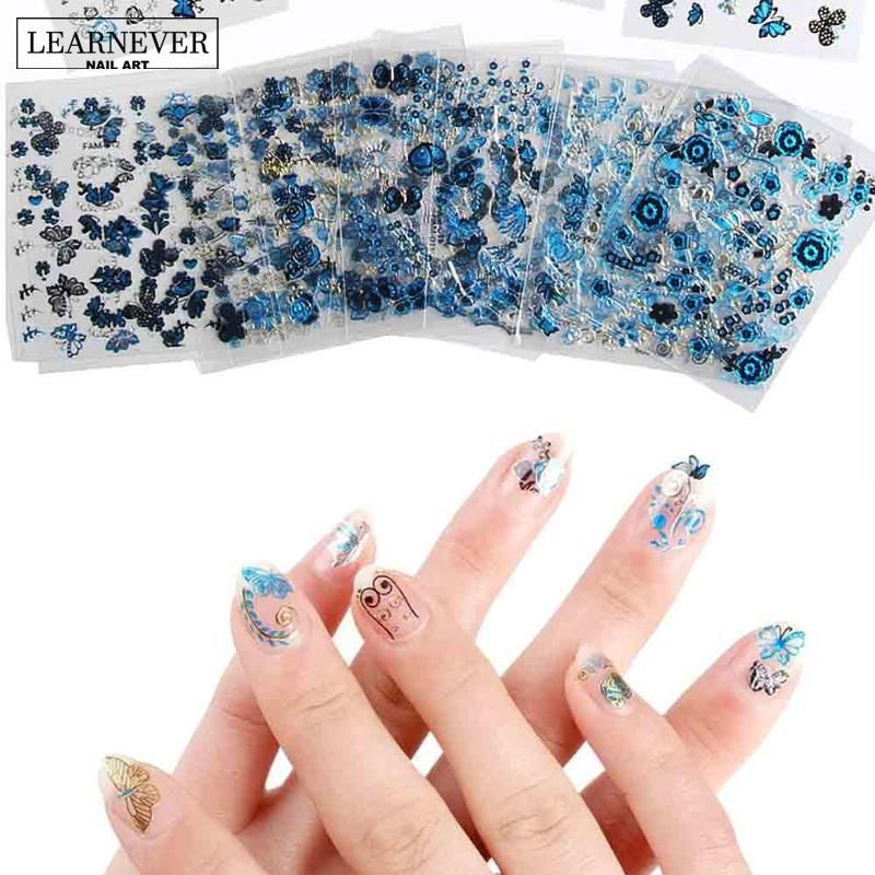 Learnever 3d Nail Sticker Tree Leaf Butterfly Flora Pattern Stamping