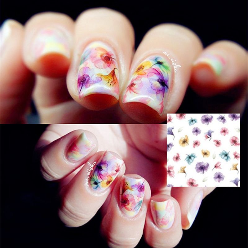 1 Sheet Beautiful Colorful Chinese Ink Flower Nail Art Water Decals