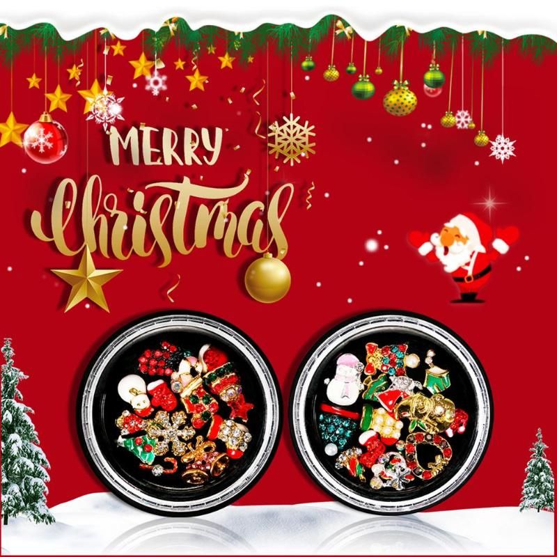 1 Box Christmas Nail Art Stickers 3d Rhinestone Plastic Pearl Metal