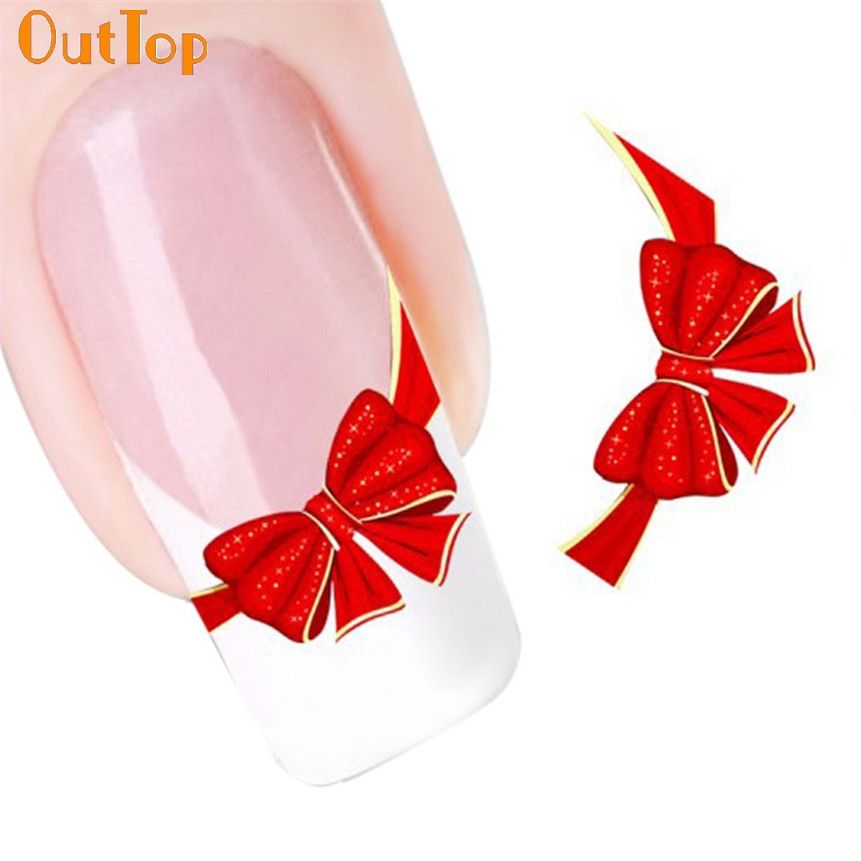 Outtop Colorwomen 1pc Hot Cute Red Bows Nail Art Tip Art Water Transfers Decal Manicure Stickers 160715 Drop Shipping