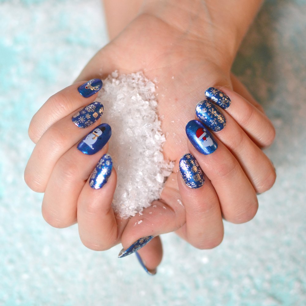 Here 23 nail art ideas for the holiday season and beyond. Winter and christmas holiday nail art compilation. Whether you are going to the beach party or having fun party at your farm house this gold sparkly touch on blue floral nails is perfect for every occasion.