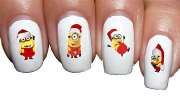 You can try this minion nail art tutorial for christmas this year. Make two straps on the sides as seen. Christmas minions nail decal tattoo nail sticker nail art minions nail art minion face decal despicable me movie mcm 008 43 by one stop nails.