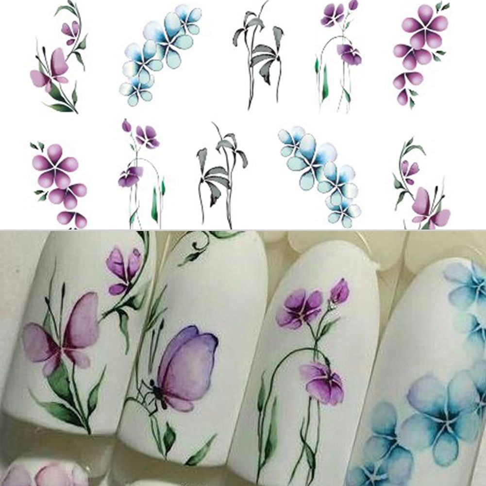 1pcs Gradient Lotus Decals Purple Flower Vine Designs For Nail Art
