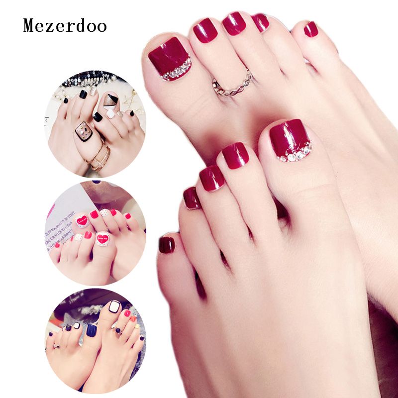 24 X New 3d Wine Red Summer Short Fake False Toe Nails Art Tips Stickers Glue Ebay