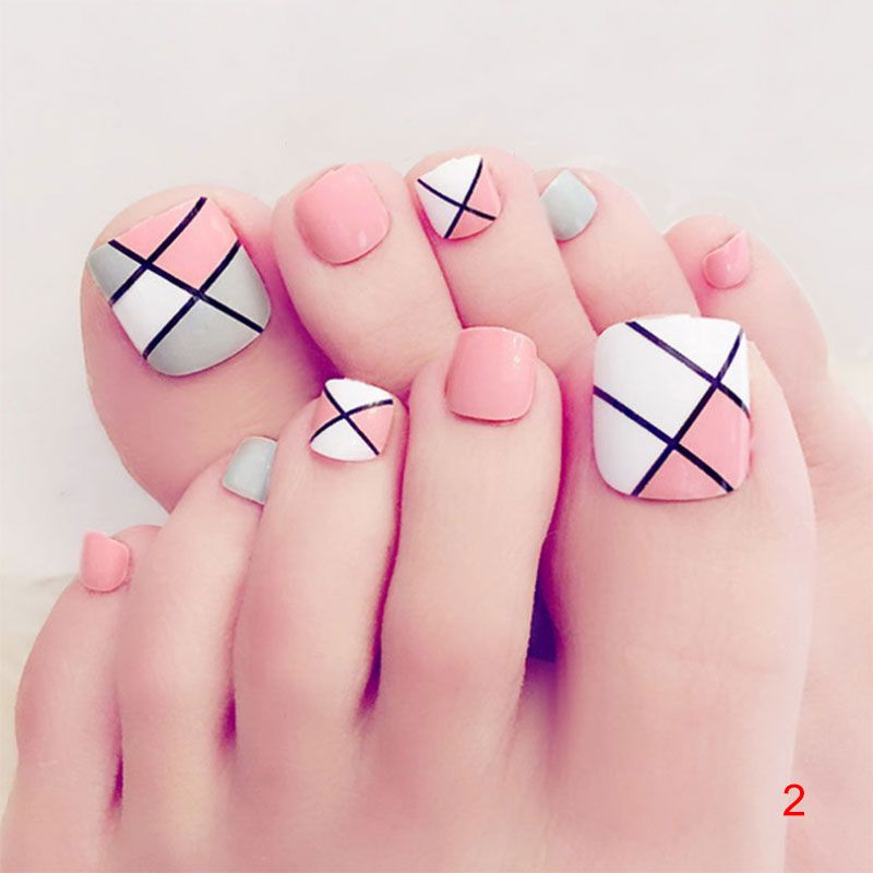24 Pcs Set Fresh Style Toe Fake Nails 3d Foot Full Toes Nail Art Tips False Nails For Lady Girls Toenails Press On Nail