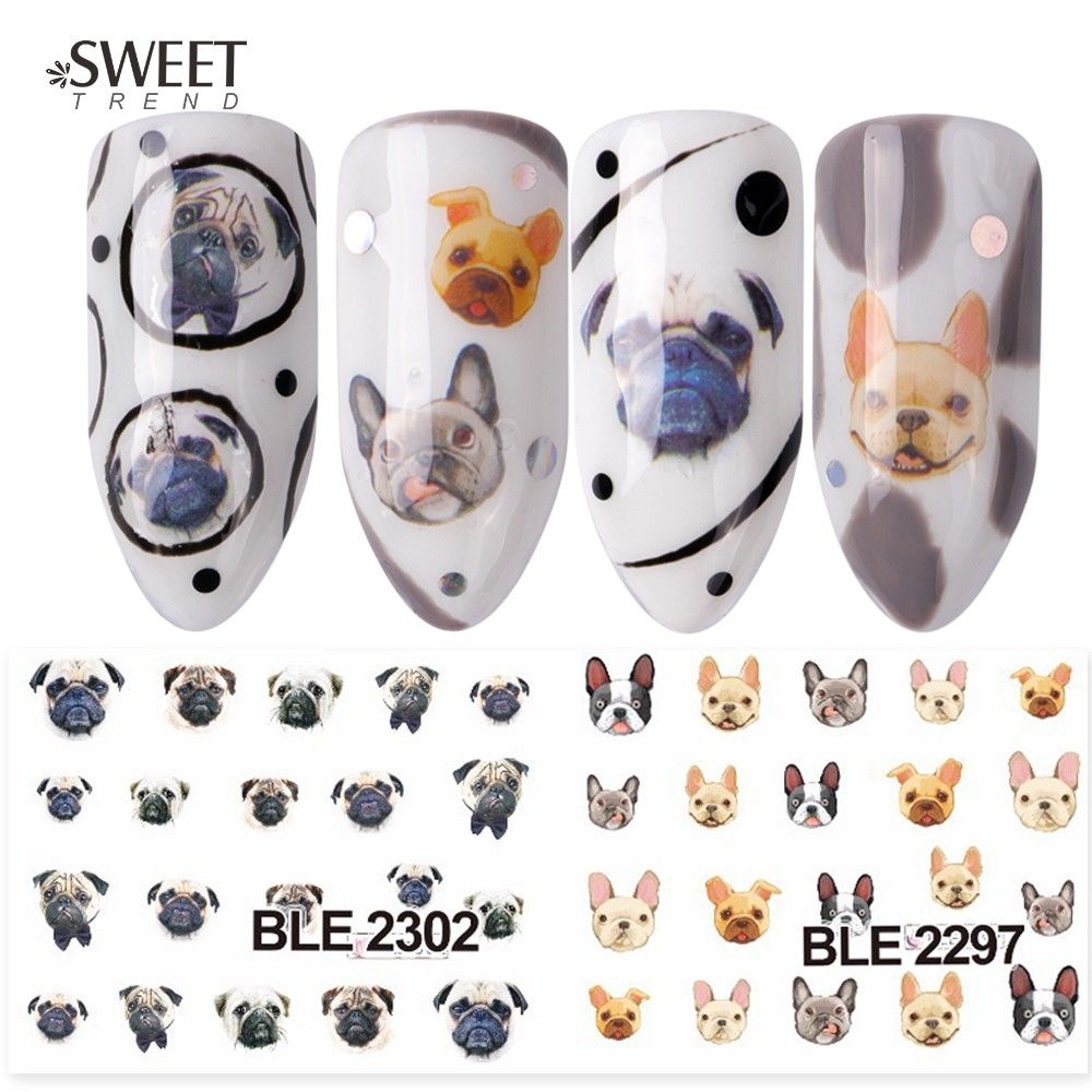 1 Sheet Cute Dog Nail Art Water Transfer Stickers Water Decals Nail Tips Decals Diy Manicure Nail Art Tattoos Lable2292 2302