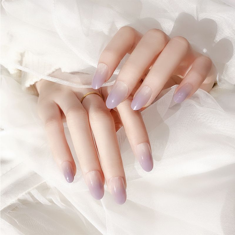 Pretty Purple Gradient False Nails Round Head Pre Design Handmade