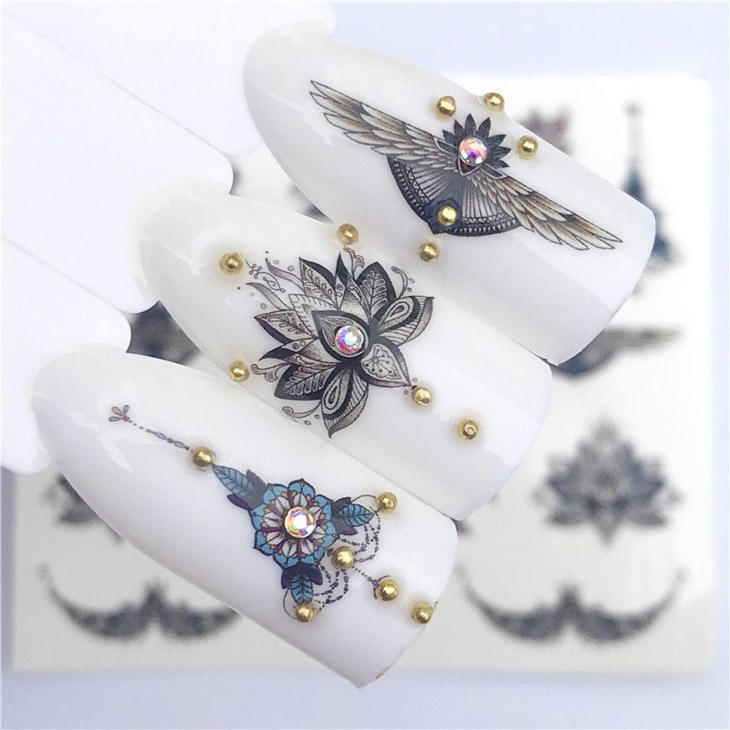 Nail Sticker Water Decals Lotus Flower Wing Nails Slider Art Design