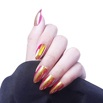 Amazon Com 28 Pcs Stiletto Nails Full Cover Chrome Powder Green