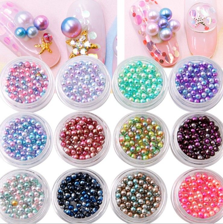 Nail Art Decorations Kit 12 Boxes 68g Multi Size Round Pearl 3d Nail
