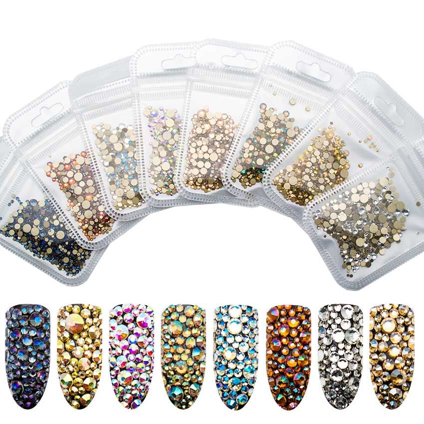 Multi Size Glass Rhinestones For Nail Mixed Colors Nail Art Decorations Flat Back Ab Crystal Magic 3d Diy Manicure Charm Gems