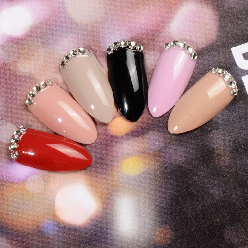 Bling Nail Art False Pointed Fake Stiletto Nails White Crystal