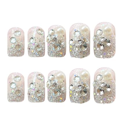 Amazon Com 24pcs Diy False Nail Tips Full Cover Creative Diamante
