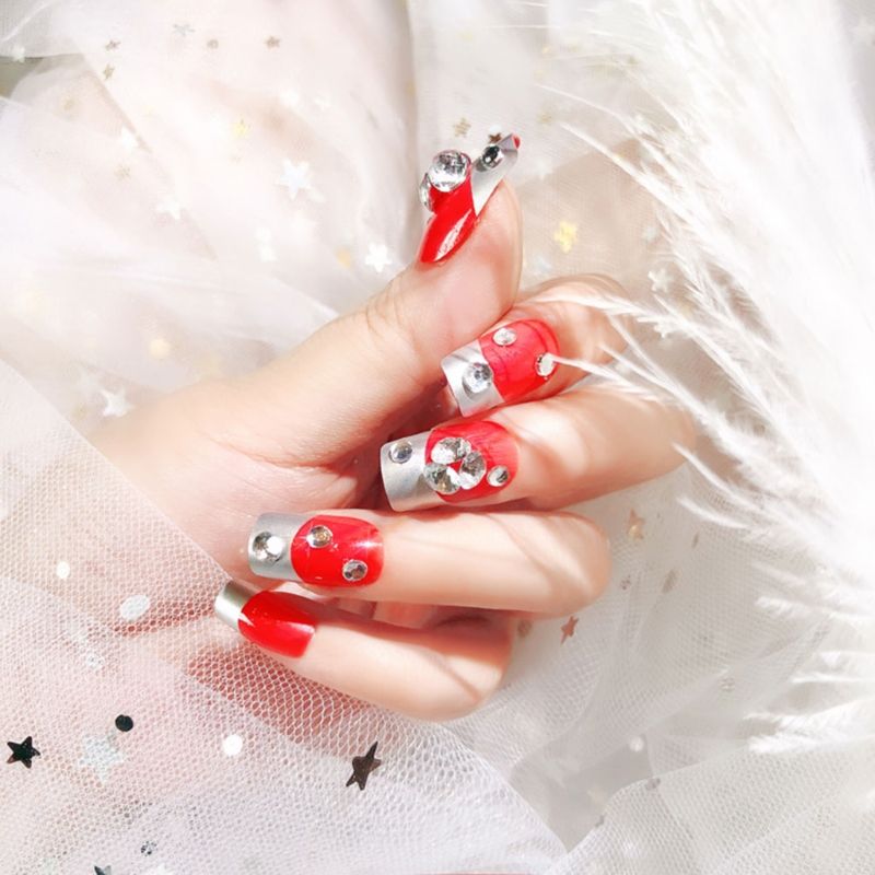 Glitter French Nails Crystal Diamond False Nail Cover Nail Art