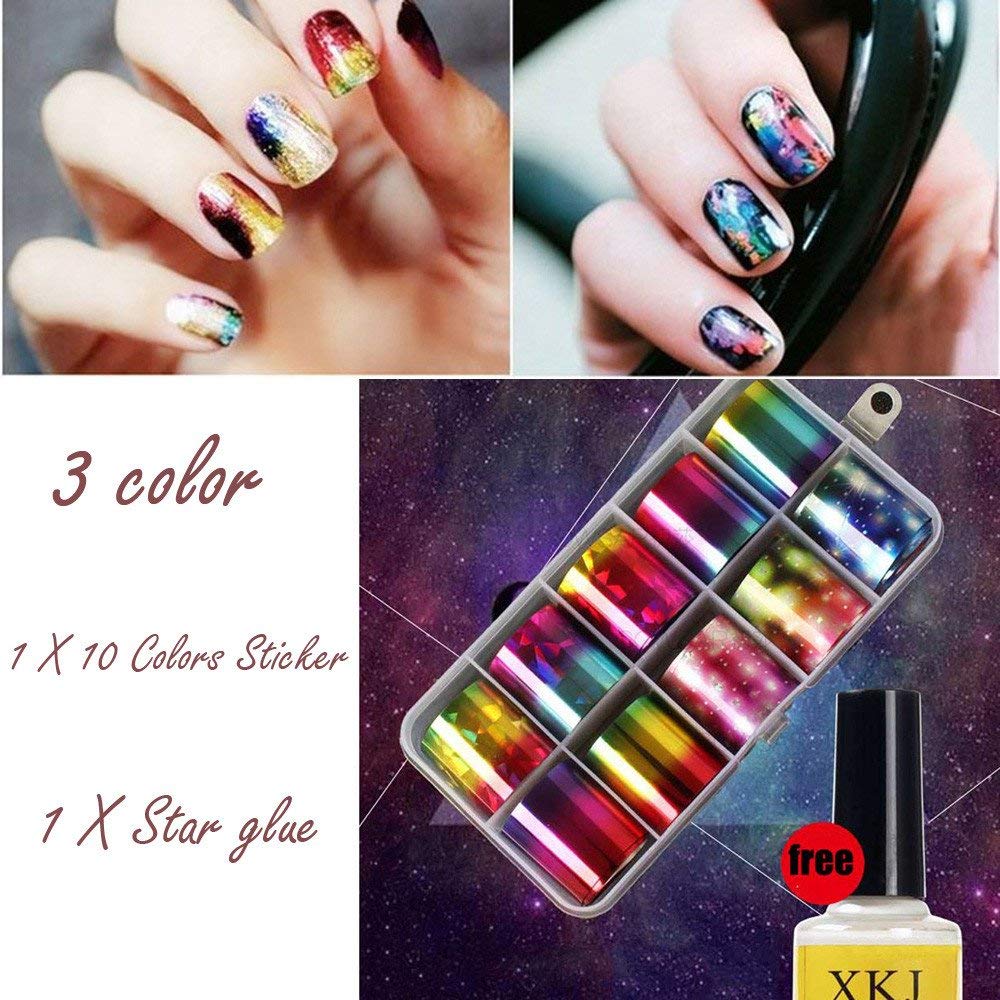Details About 15 Colors Nail Art Transfer Foil Sticker For Nail Tip Decoration 1star Glue Set