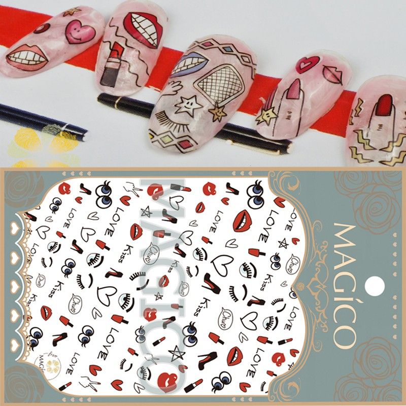 Forever Jasmine1sheet Red Lipstick Nail Art Sticker Heart Decal Big