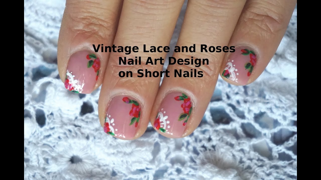 Vintage Lace And Roses Nail Art Design Tutorial On Short Nails Youtube